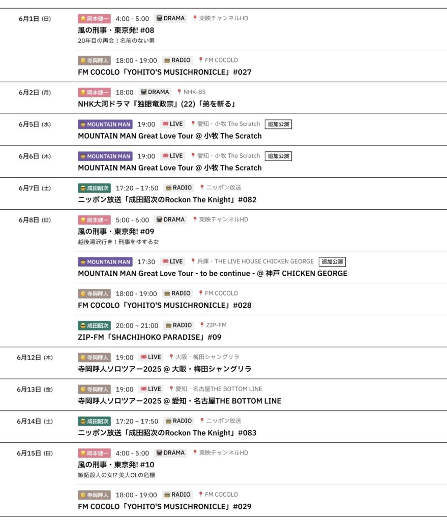 📅 6/1〜6/15までのスケジュールをお届けします。 ※現時点で確認可能な範囲のみ。 ... -