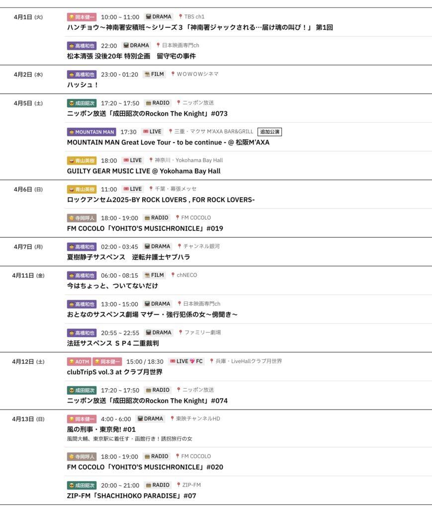 📅 4/1〜4/13までのスケジュールをお届けします。 ※現時点で確認可能な範囲のみ。 ...