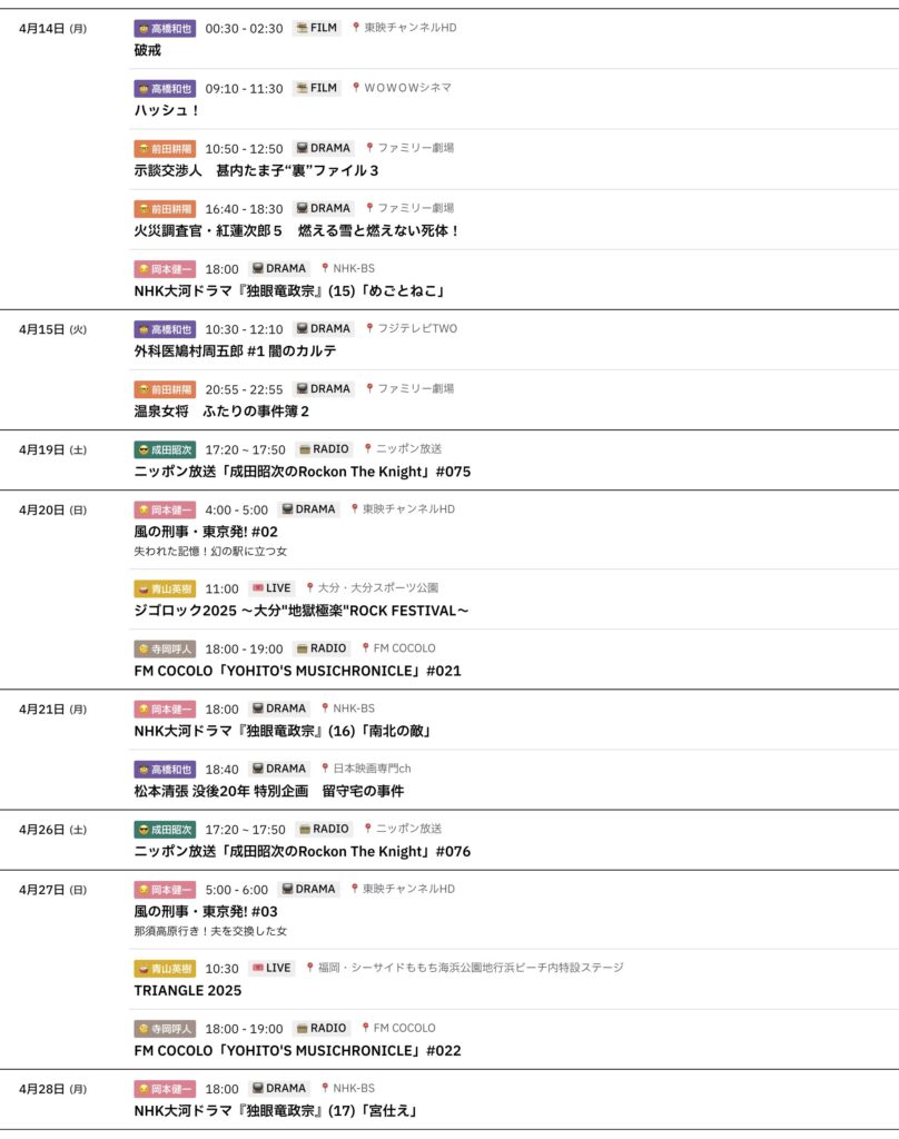 📅 4/14〜4/28までのスケジュールをお届けします。 ※現時点で確認可能な範囲のみ。... -