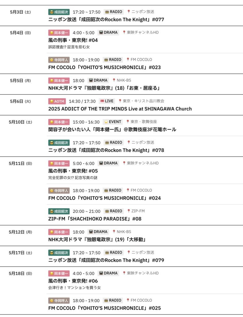 📅 5/1〜5/18までのスケジュールをお届けします。 ※現時点で確認可能な範囲のみ。 ... -
