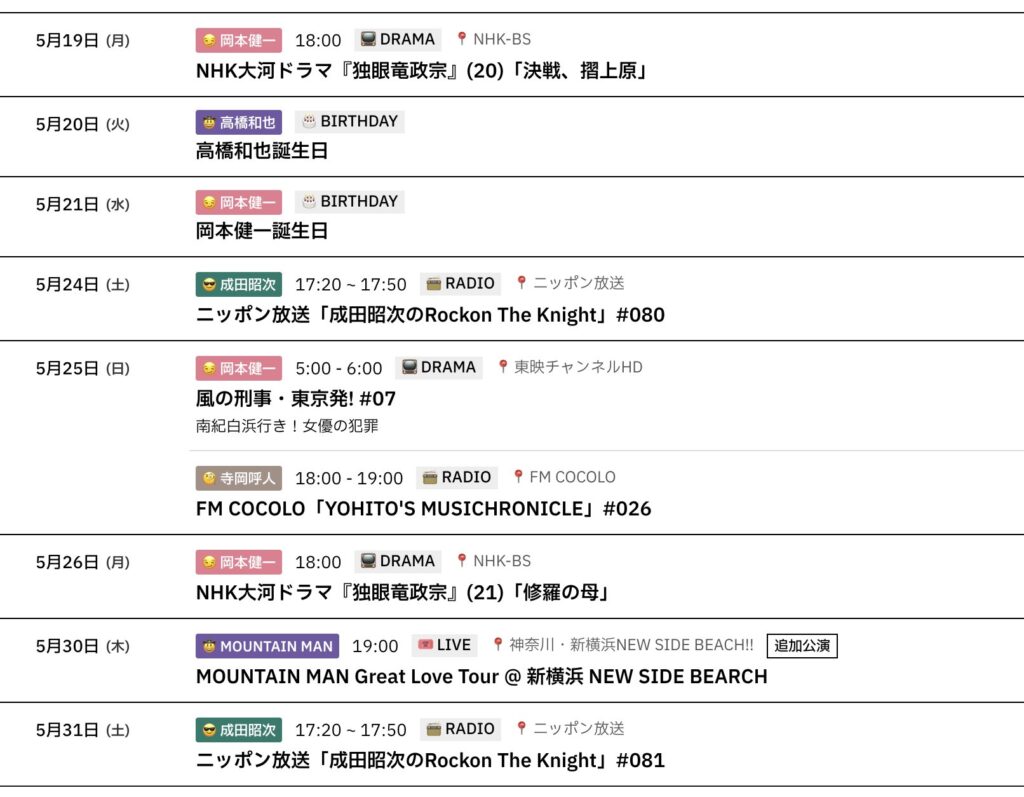 📅 5/19〜5/31までのスケジュールをお届けします。 ※現時点で確認可能な範囲のみ。... -