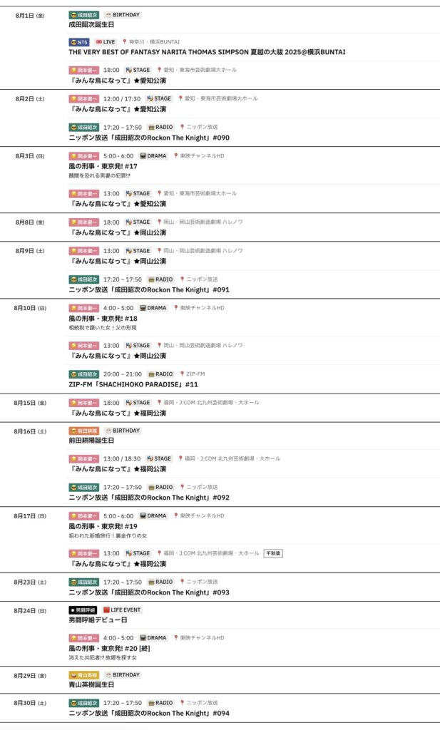 📅 8月までのスケジュールをお届けします。 ※現時点で確認可能な範囲のみ。 (2025... -