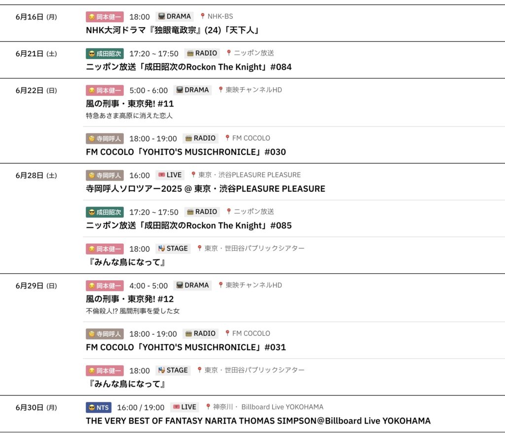 📅 6/16〜6/30までのスケジュールをお届けします。 ※現時点で確認可能な範囲のみ。... -