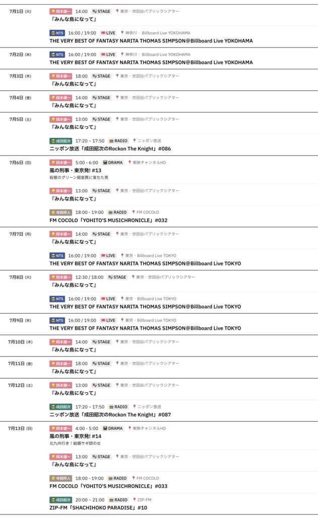 📅 7/1〜7/13までのスケジュールをお届けします。 ※現時点で確認可能な範囲のみ。 ... -