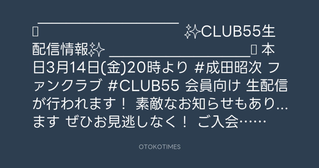 ◤ ̄ ̄ ̄ ̄ ̄ ̄ ̄ ̄ ̄ ̄ ✨CLUB55生配信情報✨ __________◢ 本日3月14日(... -