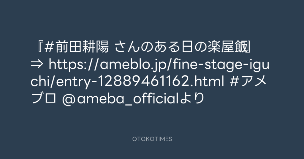 『#前田耕陽 さんのある日の楽屋飯♪』 ⇒ https://ameblo.jp/fine-stage-iguchi/ent...