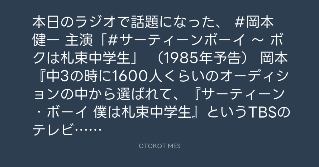 本日のラジオで話題になった、 #岡本健一 主演「#サーティーンボーイ ~ ボクは札... -