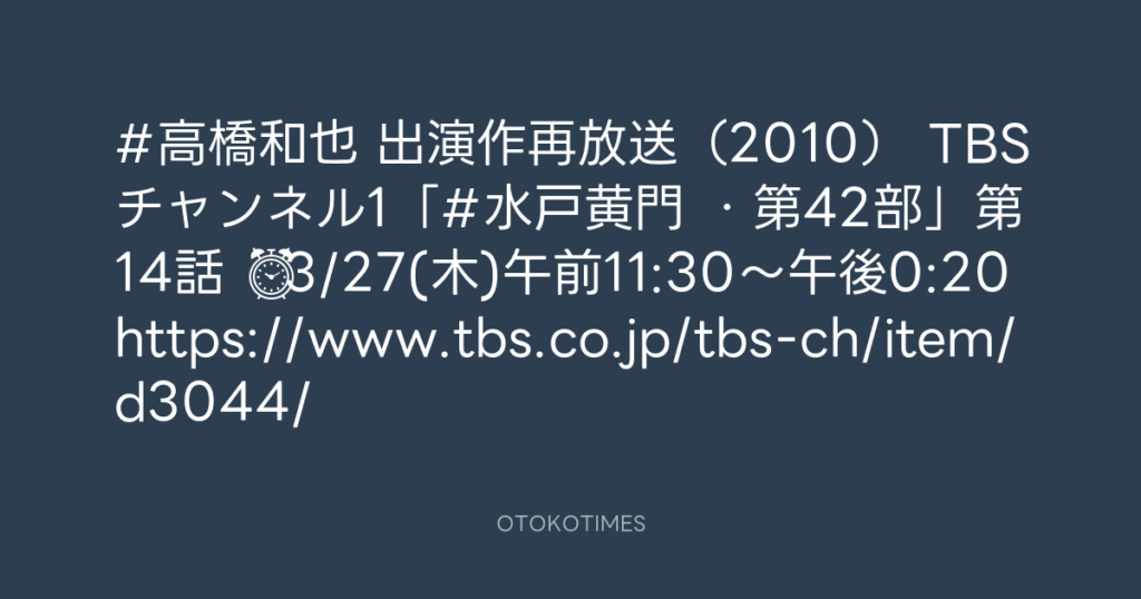 #高橋和也 出演作再放送(2010) 📺TBSチャンネル1「#水戸黄門 ・第42部」第14話 ... -