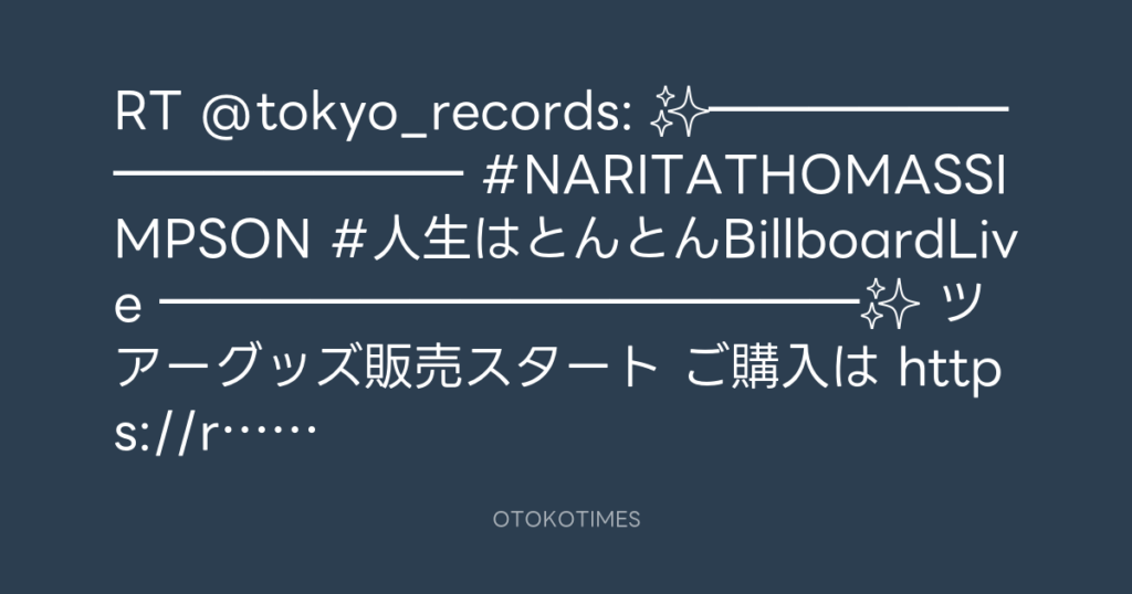 RT @tokyo_records: ✨━━━━━━━━━━━━━ #NARITATHOMASSIMPSON #人生はとんとんBillbo... -