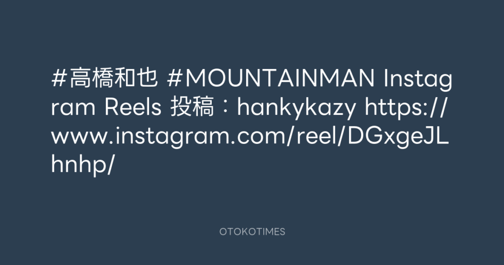 #高橋和也 #MOUNTAINMAN Instagram Reels 投稿:hankykazy https://www.instagram.... -
