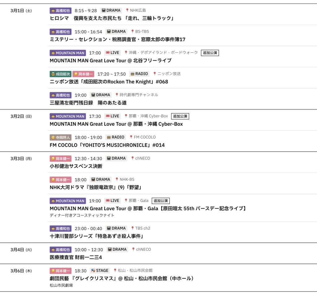 📅 3/1〜3/9までのスケジュールをお届けします。 ※現時点で確認可能な範囲のみ。 ...