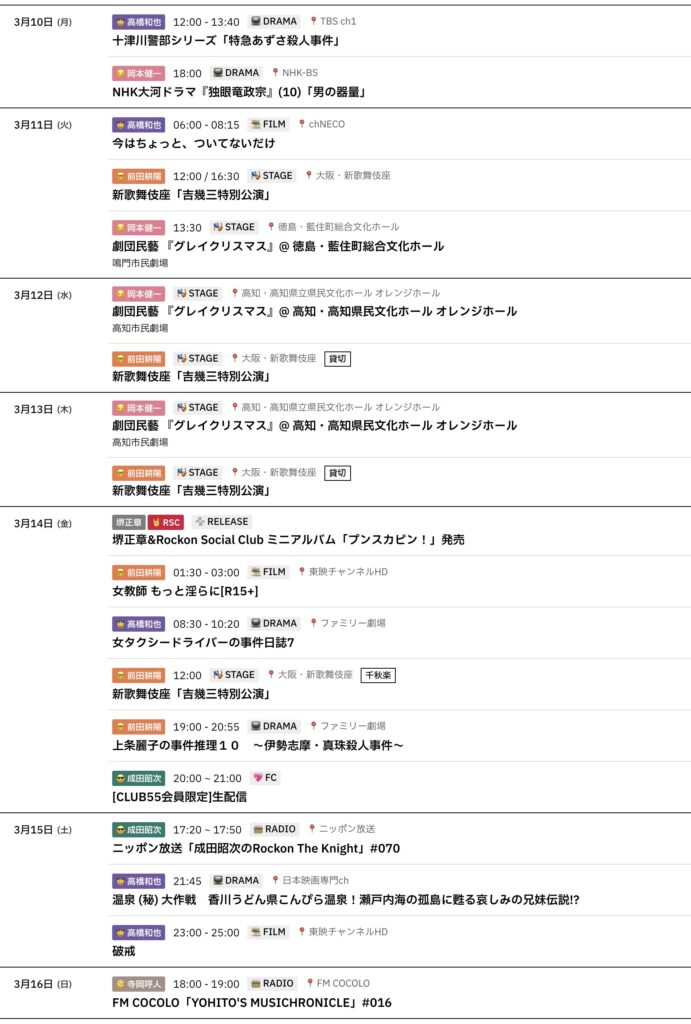 📅 3/10〜3/16までのスケジュールをお届けします。 ※現時点で確認可能な範囲のみ。... -
