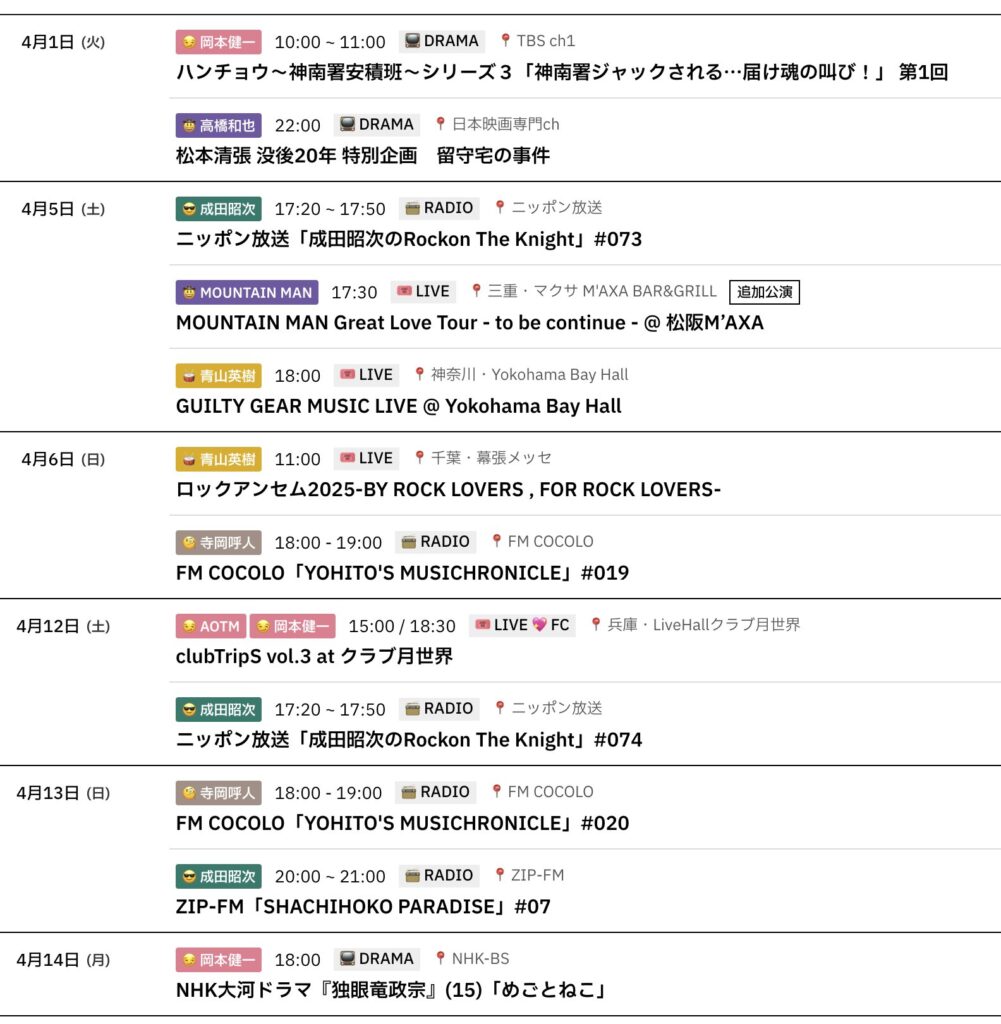 📅 4月までのスケジュールをお届けします。 ※現時点で確認可能な範囲のみ。 (2025... -
