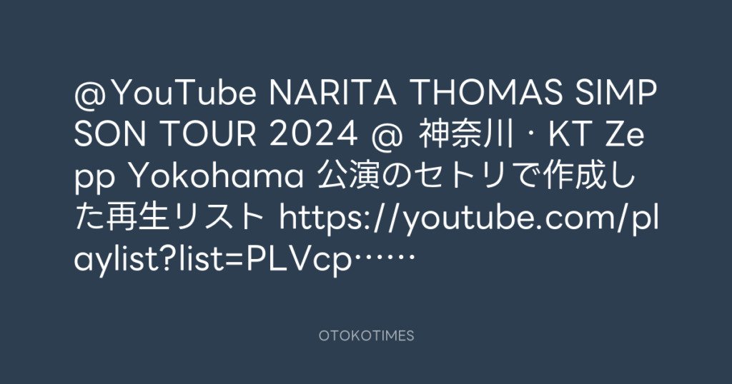 @YouTube NARITA THOMAS SIMPSON TOUR 2024 @ 神奈川・KT Zepp Yokohama 公演のセ... -