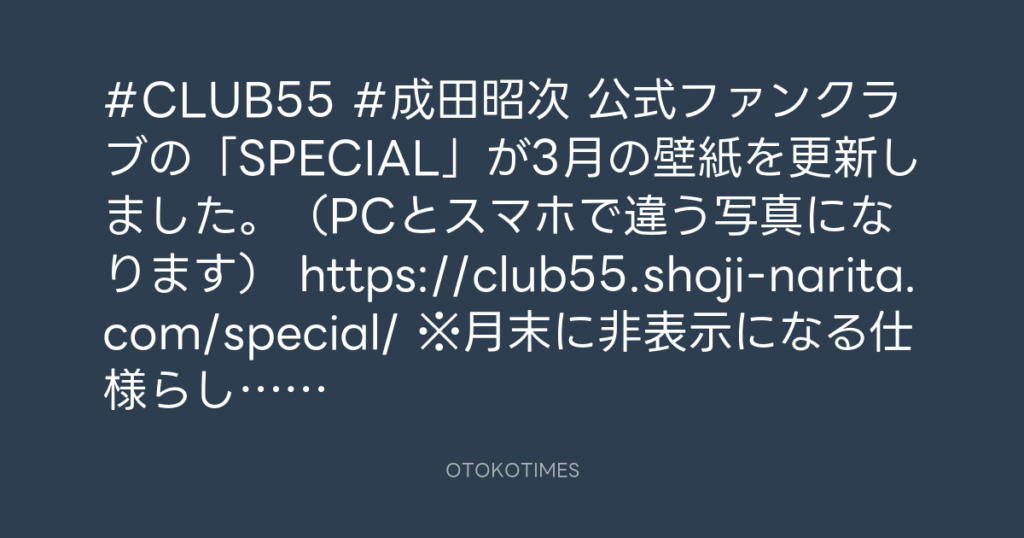 #CLUB55 #成田昭次 公式ファンクラブの「SPECIAL」が3月の壁紙を更新しました。(P...