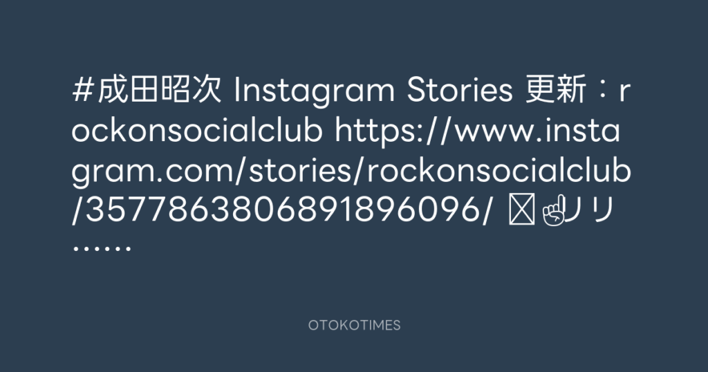 #成田昭次 Instagram Stories 更新:rockonsocialclub https://www.instagram.com/... -