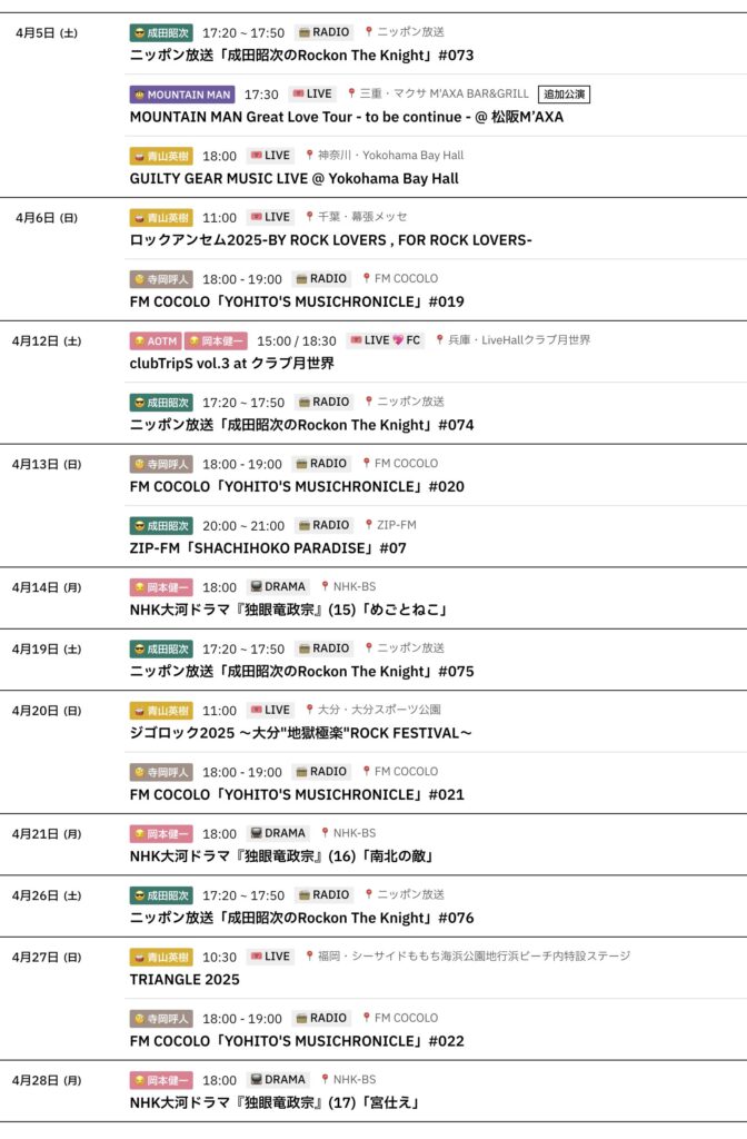 📅 4月の現状スケジュールをお届けします。 ※現時点で確認可能な範囲のみ。 (2025... -