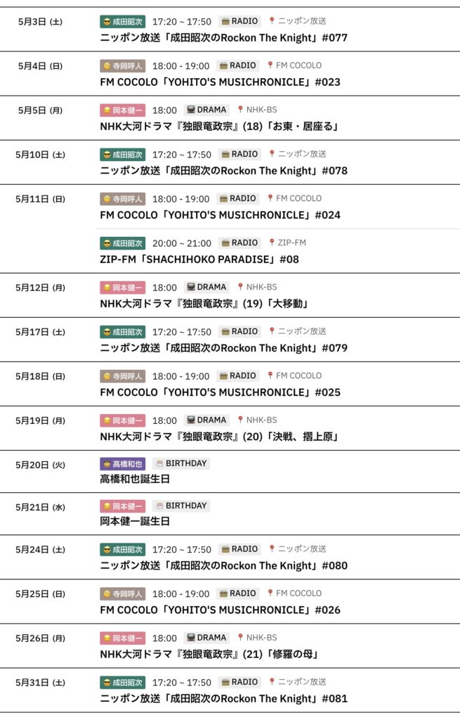 📅 5月の現状スケジュールをお届けします。 ※現時点で確認可能な範囲のみ。 (2025... -