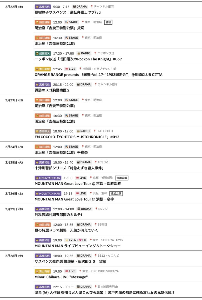 📅 2/22〜2/28までのスケジュールをお届けします。 ※現時点で確認可能な範囲のみ。... -