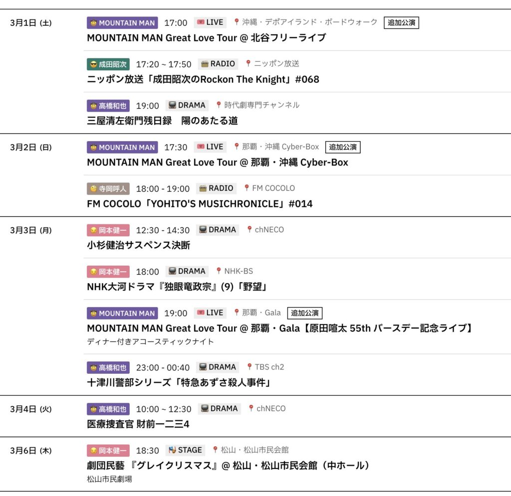 📅 3/1〜3/9までのスケジュールをお届けします。 ※現時点で確認可能な範囲のみ。 ... -