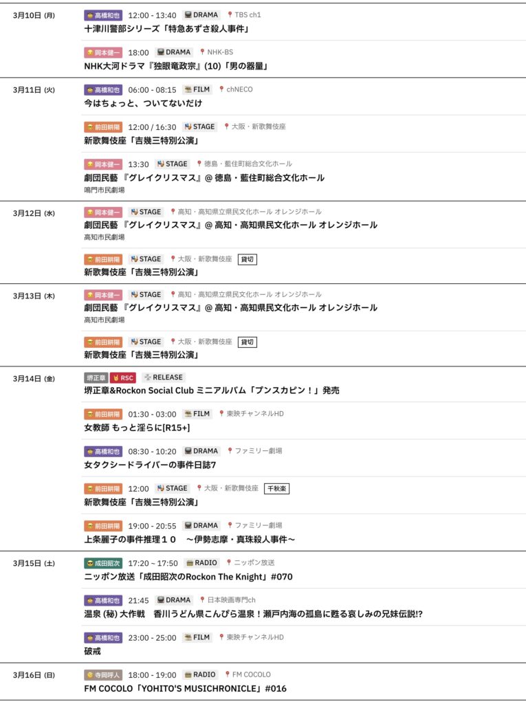 📅 3/10〜3/16までのスケジュールをお届けします。 ※現時点で確認可能な範囲のみ。... -