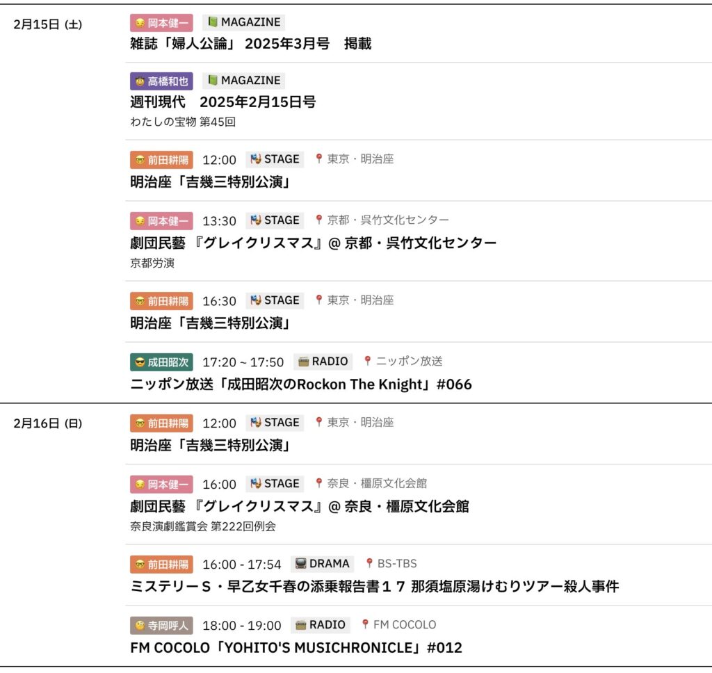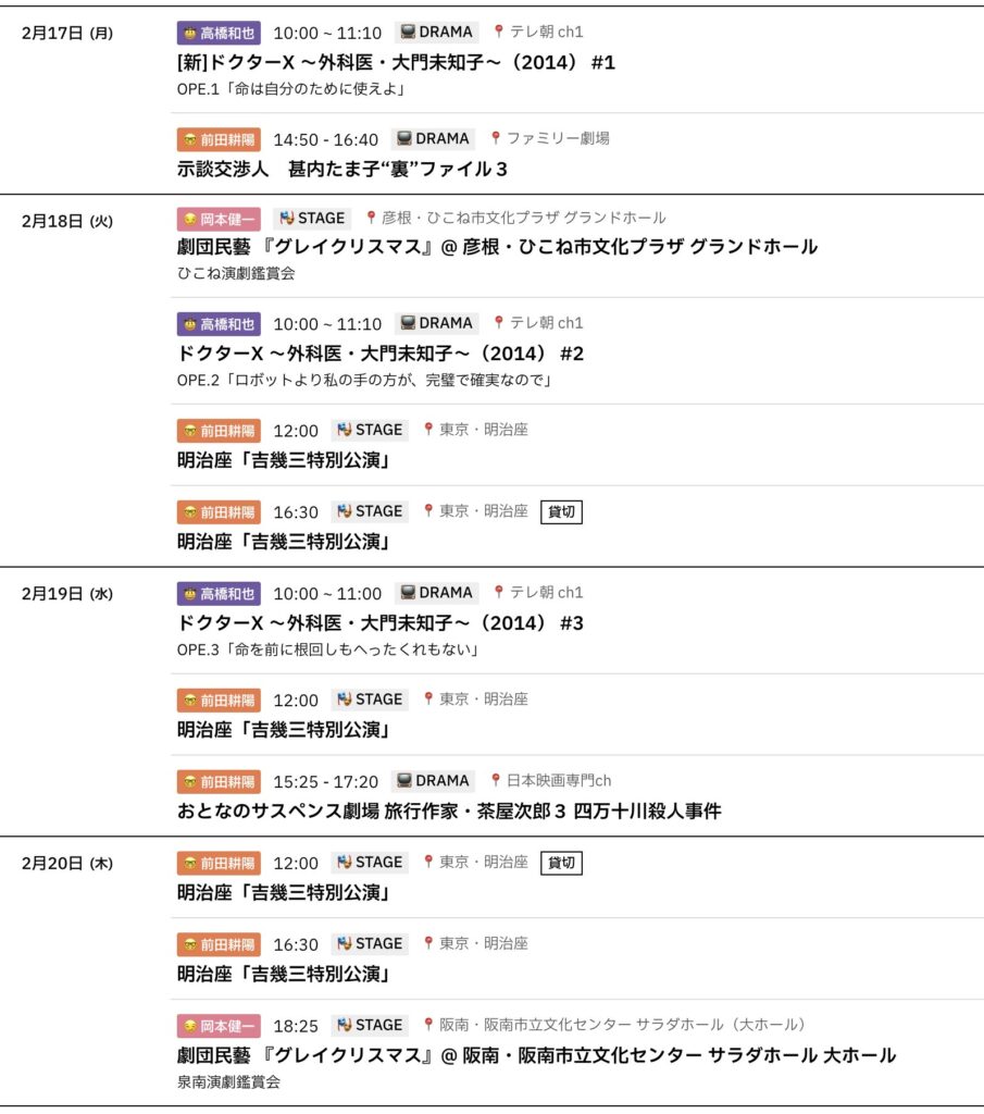📅 2/17〜2/23までのスケジュールをお届けします。 ※現時点で確認可能な範囲のみ。... -