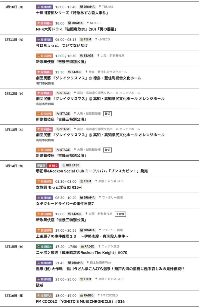 📅 3/10〜3/16までのスケジュールをお届けします。 ※現時点で確認可能な範囲のみ。... -