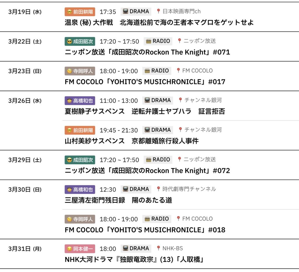 📅 3/17〜3/31までのスケジュールをお届けします。 ※現時点で確認可能な範囲のみ。... -