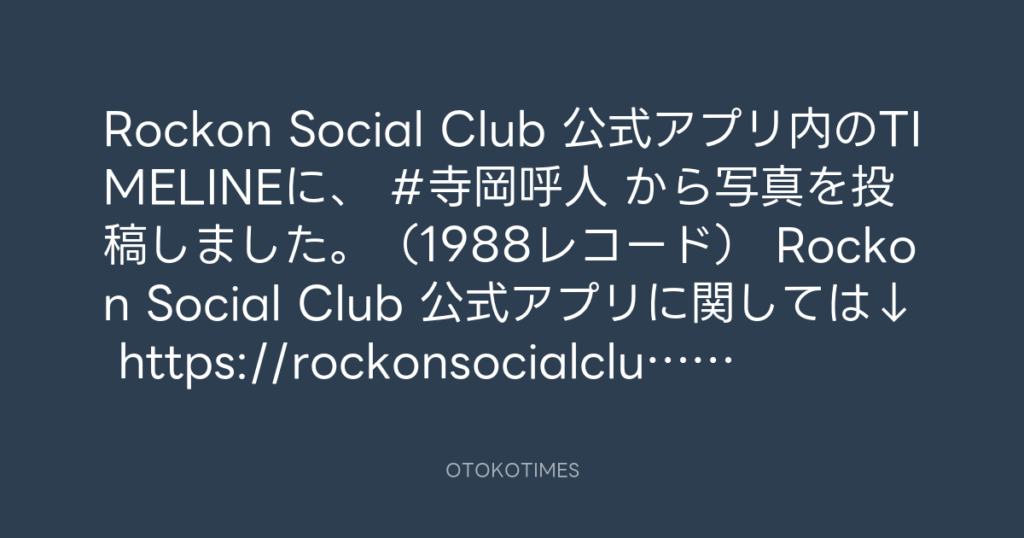 Rockon Social Club 公式アプリ内のTIMELINEに、 #寺岡呼人 から写真を投稿しまし... -