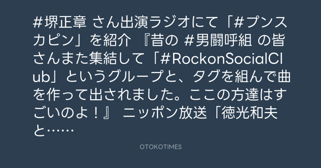 #堺正章 さん出演ラジオにて「#プンスカピン」を紹介 『昔の #男闘呼組 の皆さんま... -