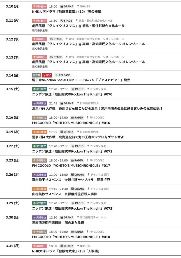 📅 3/10〜3/31までのスケジュールをお届けします。 ※現時点で確認可能な範囲のみ。...