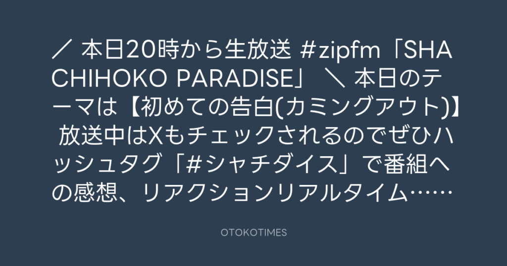 / 本日20時から生放送📻 #zipfm「SHACHIHOKO PARADISE」 \ 本日のテーマは【初め... -