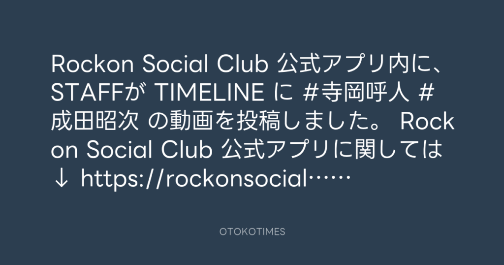 Rockon Social Club 公式アプリ内に、STAFFが TIMELINE に #寺岡呼人 #成田昭次 の... -