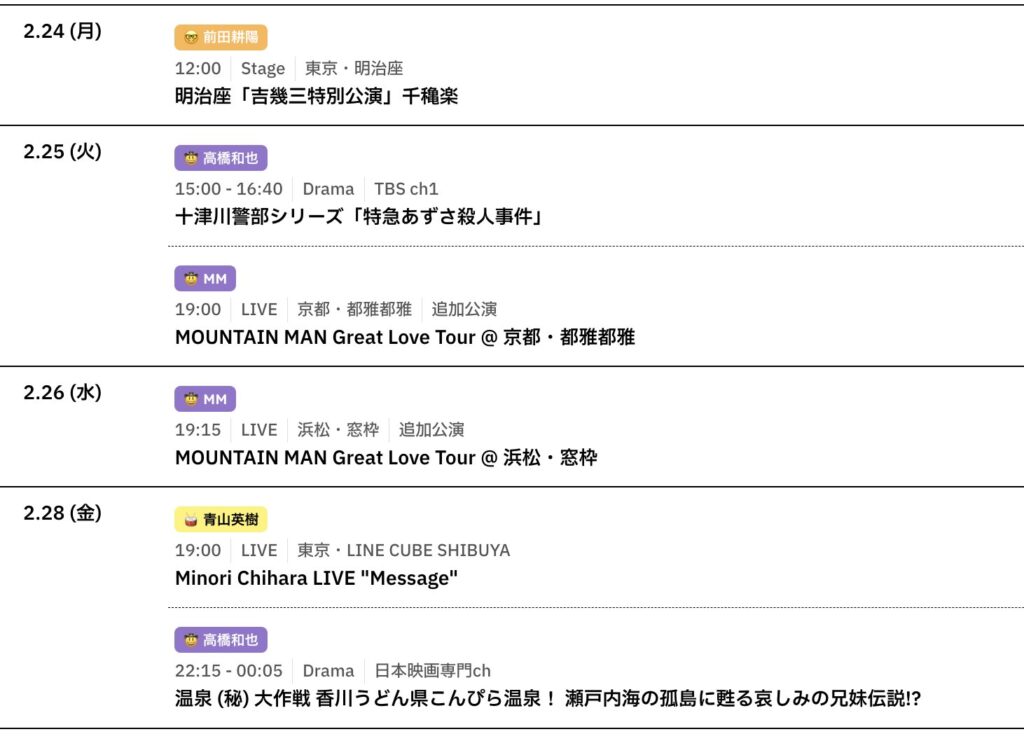 📅 2/24〜3/2までのスケジュールをお届けします。 ※現時点で確認可能な範囲のみ。 ... -