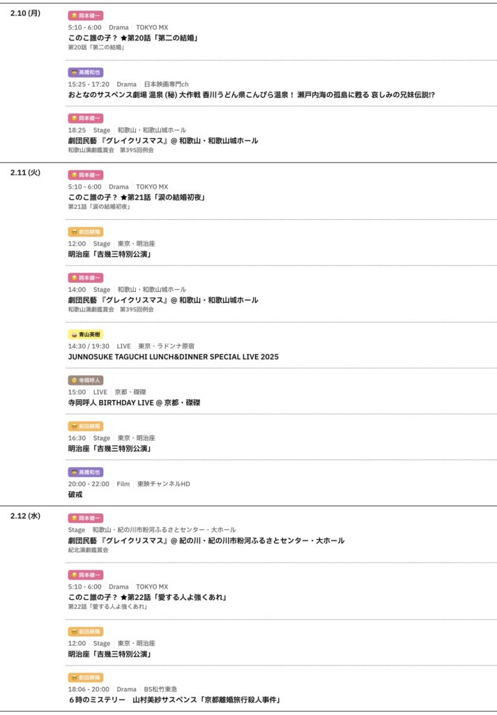 📅 2/10〜2/16までのスケジュールをお届けします。 ※現時点で確認可能な範囲のみ。...