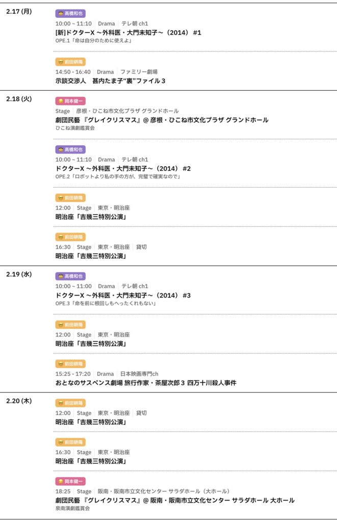 📅 2/17〜2/23までのスケジュールをお届けします。 ※現時点で確認可能な範囲のみ。... -