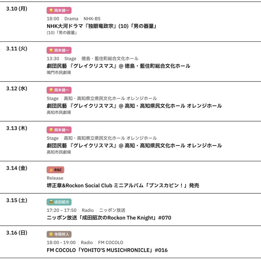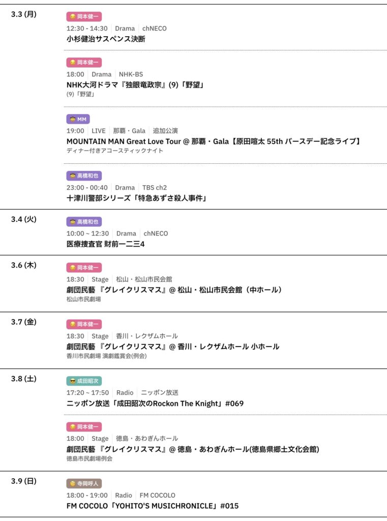 📅 3/10〜3/16までのスケジュールをお届けします。 ※現時点で確認可能な範囲のみ。... -