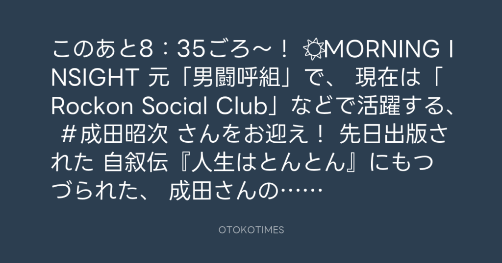 このあと8:35ごろ~! ☀️MORNING INSIGHT🔍 元「男闘呼組」で、 現在は「Rockon S...