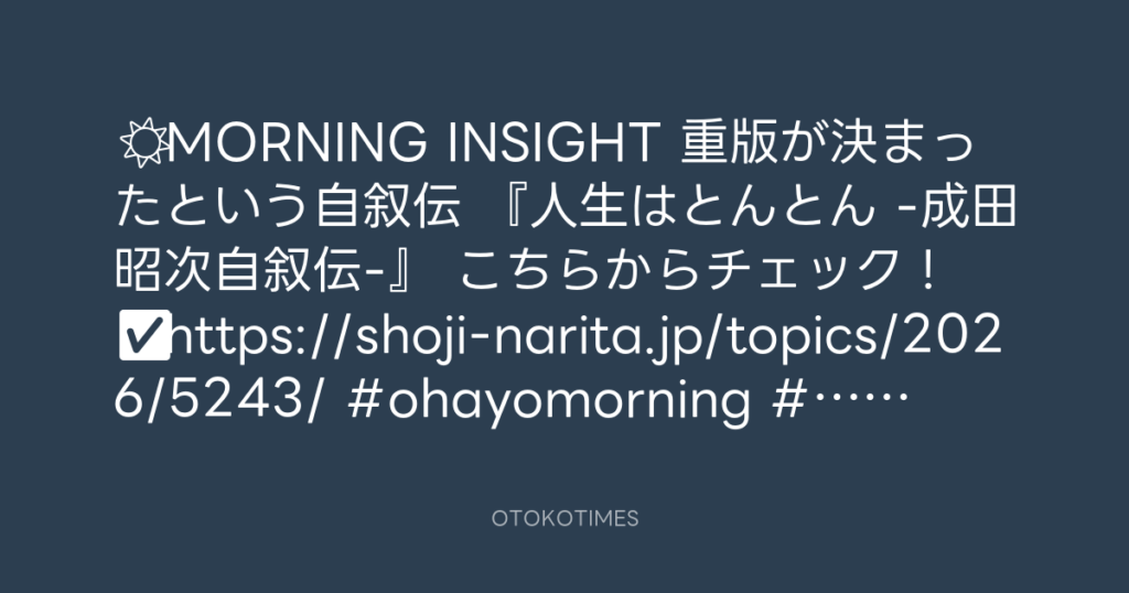 ☀️MORNING INSIGHT🔍 重版が決まったという自叙伝 『人生はとんとん -成田昭次自叙... -