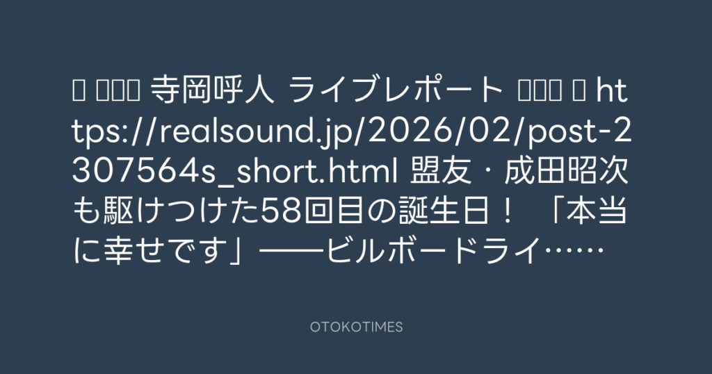 ▬ ▬▬▬ 寺岡呼人 ライブレポート ▬▬▬ ▬ 🔗https://realsound.jp/2026/02/post-23075... -