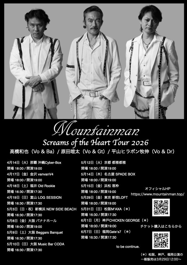 【Mountainman "Screams of the Heart" Tour — 魂の行脚が続く】 2026年3月、熱狂... -