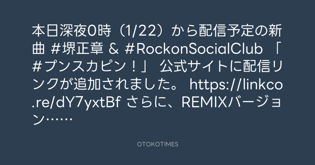 本日深夜0時(1/22)から配信予定の新曲 #堺正章 & #RockonSocialClub 「#プン... -