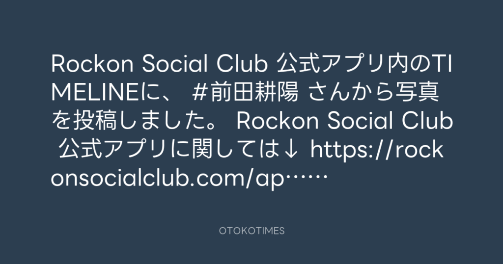Rockon Social Club 公式アプリ内のTIMELINEに、 #前田耕陽 さんから写真を投稿し... -
