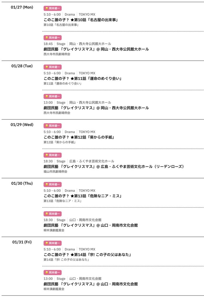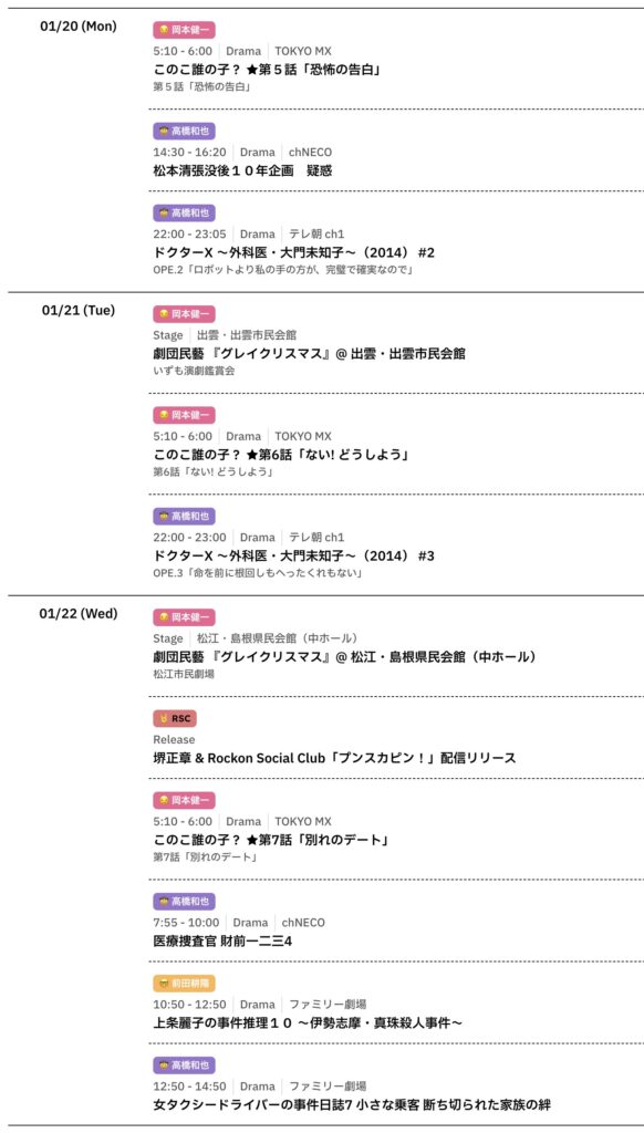 📅 1/20〜1/26までのスケジュールをお届けします。 ※現時点で確認可能な範囲のみ。... -