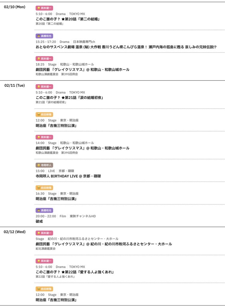📅 2/10〜2/16までのスケジュールをお届けします。 ※現時点で確認可能な範囲のみ。... -