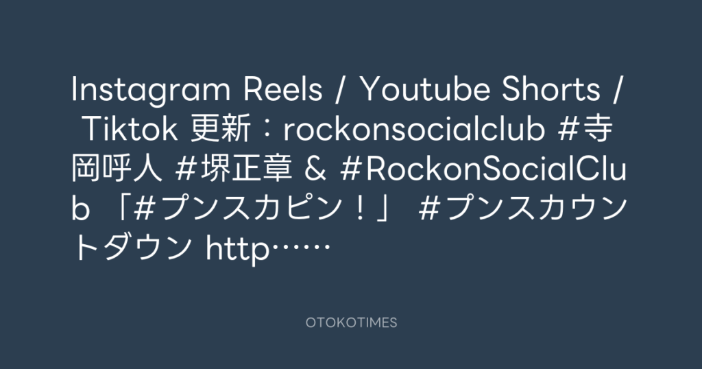 Instagram Reels / Youtube Shorts / Tiktok 更新:rockonsocialclub #寺岡呼人 #... -