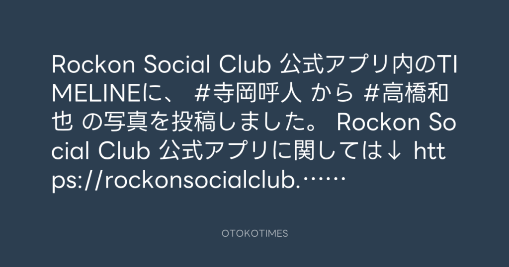 Rockon Social Club 公式アプリ内のTIMELINEに、 #寺岡呼人 から #高橋和也 の写真...
