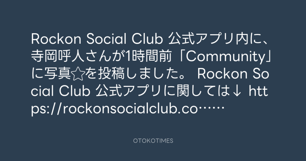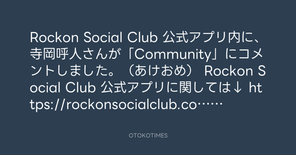 Rockon Social Club 公式アプリ内に、寺岡呼人さんが「Community」にコメントしま... -