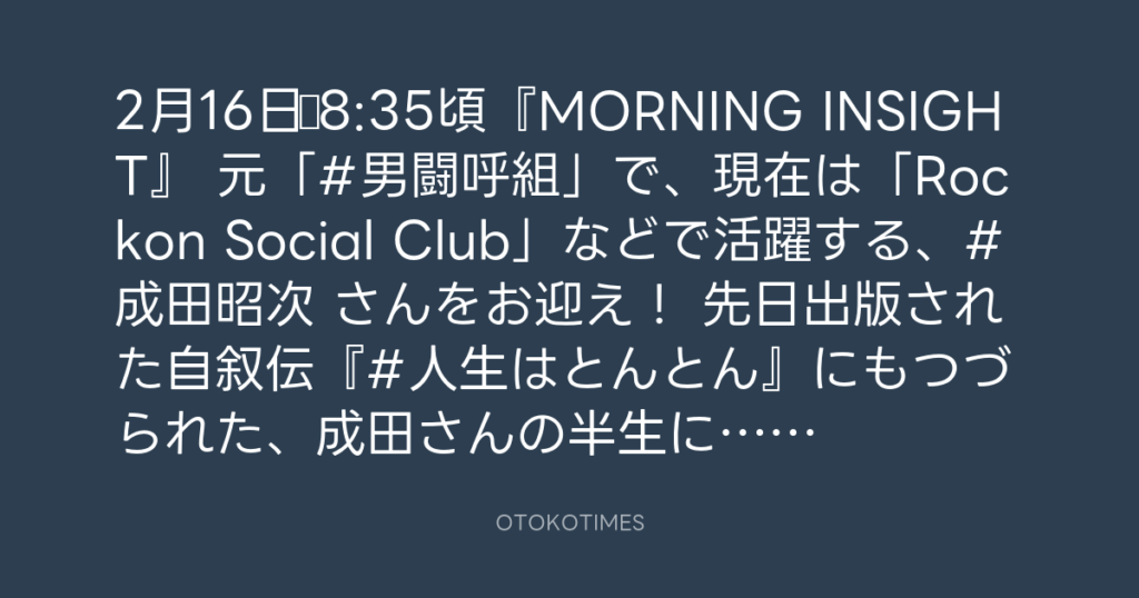📻2月16日▼8:35頃『MORNING INSIGHT』 元「#男闘呼組」で、現在は「Rockon Social ... -