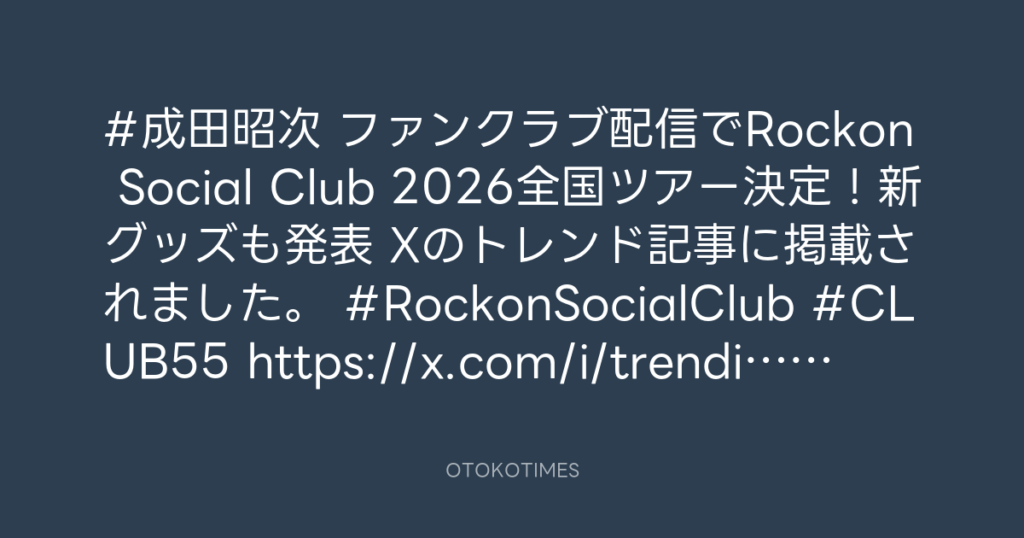 #成田昭次 ファンクラブ配信でRockon Social Club 2026全国ツアー決定!新グッズも... -